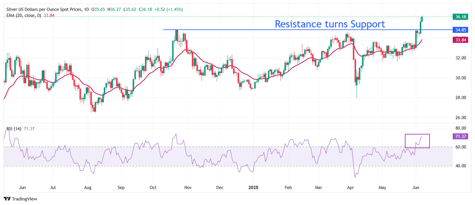 - Silver price rises further to near $36.20, aiming to balance valuation in comparison with Gold.