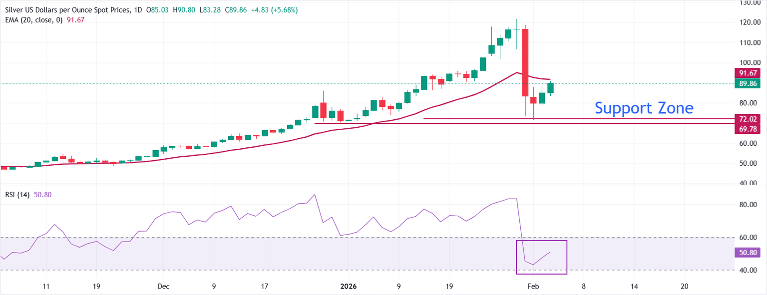 The white metal has been trading higher from the previous day as it regained ground after crashing over 30% from its lifetime peak of $121.61. Silver price corrected vertically after United States (US) President Donald Trump nominated Kevin Warsh for the succession of Federal Reserve (Fed) Chairman Jerome Powell.