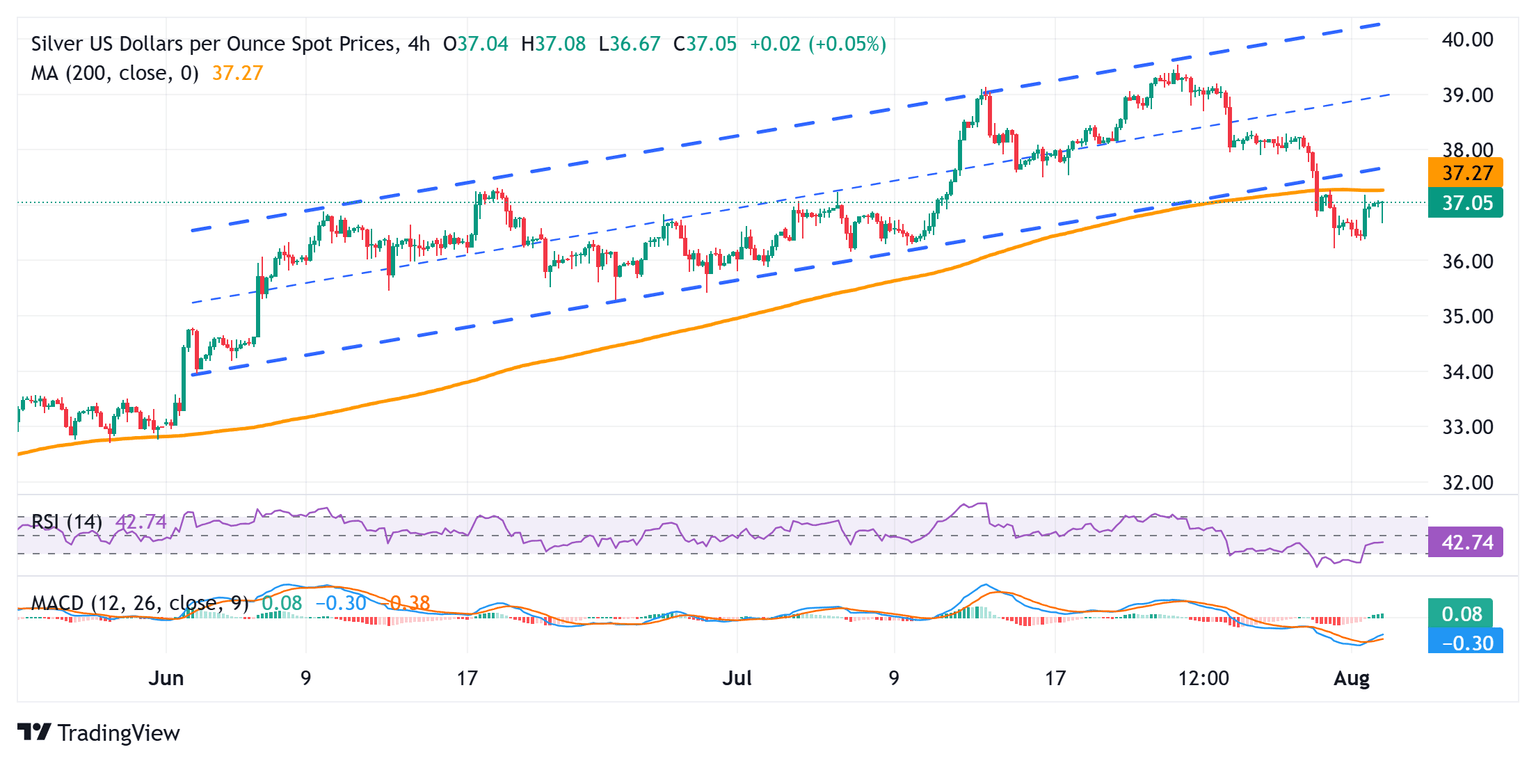 Silver (XAG/USD) struggles to capitalize on Friday's modest recovery gains and oscillates in a range at the start of a new week as softer US NFP-inspired US Dollar (USD) selling now seems to have abated. The white metal currently trades around the $37.00 mark and remains within striking distance of a four-week low touched last Thursday.