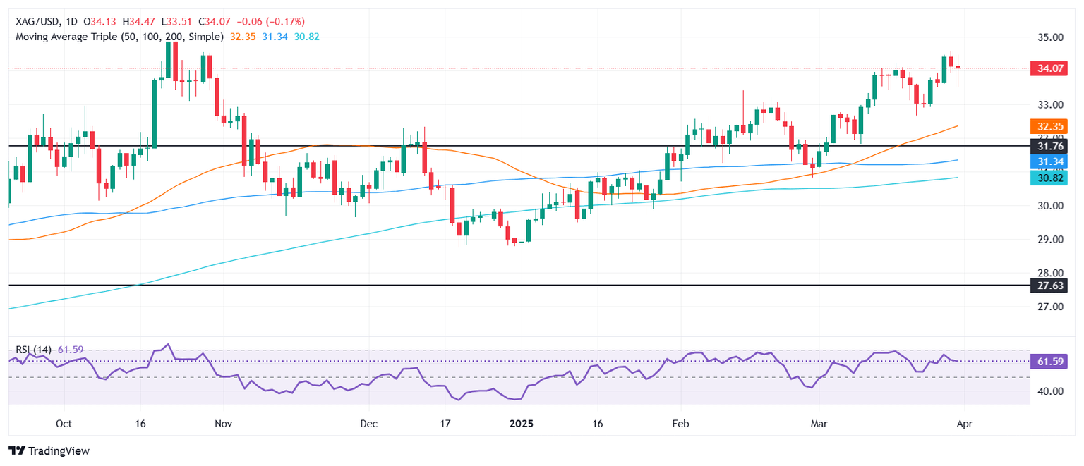 Silver Price Forecast: XAG/USD holds above $34 despite falling