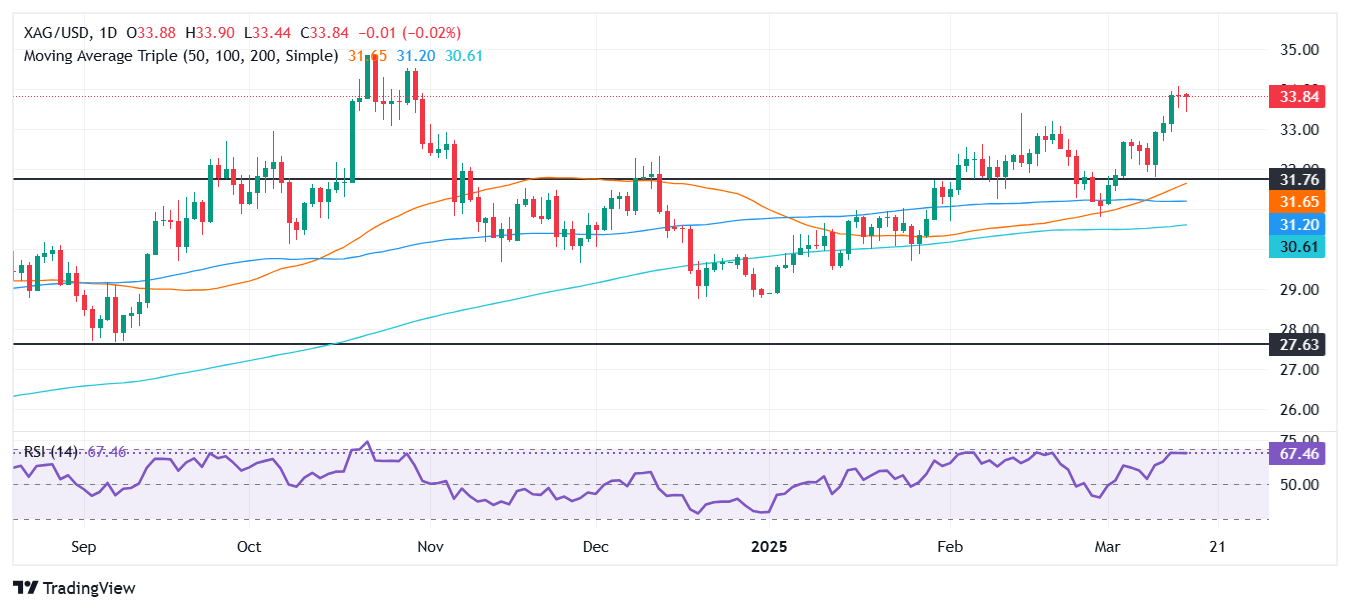 Silver Price Forecast: XAG/USD hovers near $34.00 as bulls take a breather
