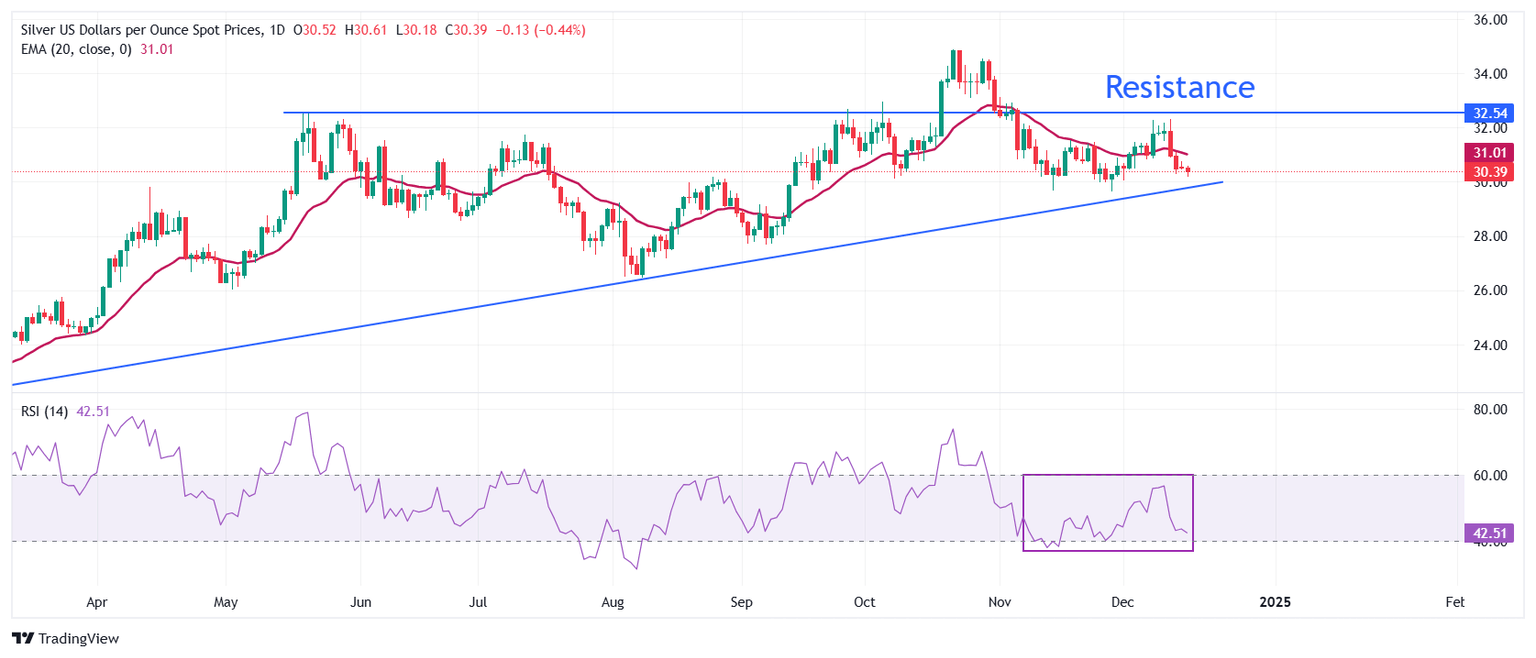 Silver price posts a fresh two-week low near $30.20 on Tuesday. The white metal weakens after breaking below the 20-day Exponential Moving Average (EMA), which trades around $31.00.