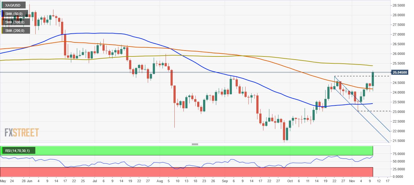 Silver Price Forecast: XAG/USD reaches a fresh three-month high above $25.00