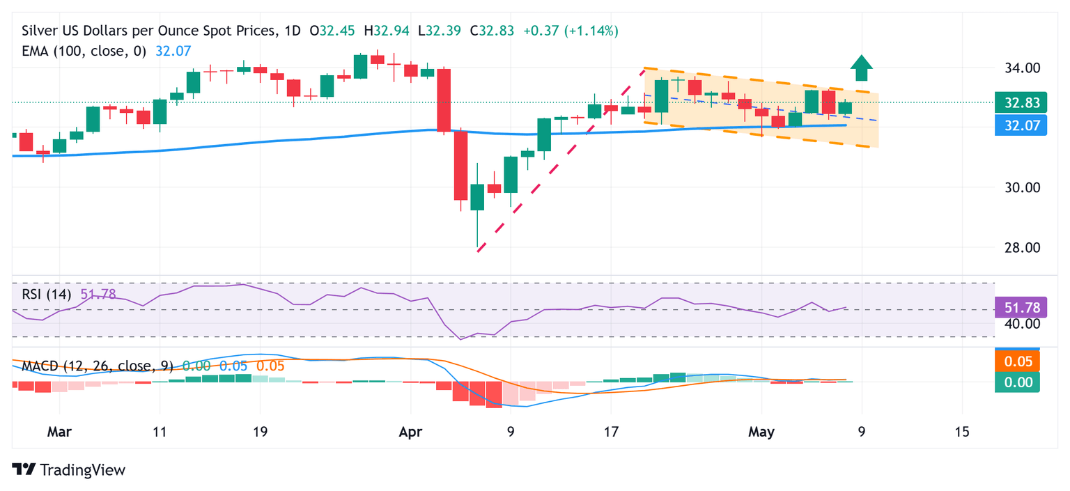 Silver Price Forecast: XAG/USD remains close to bullish flag hurdle near $33.20 area