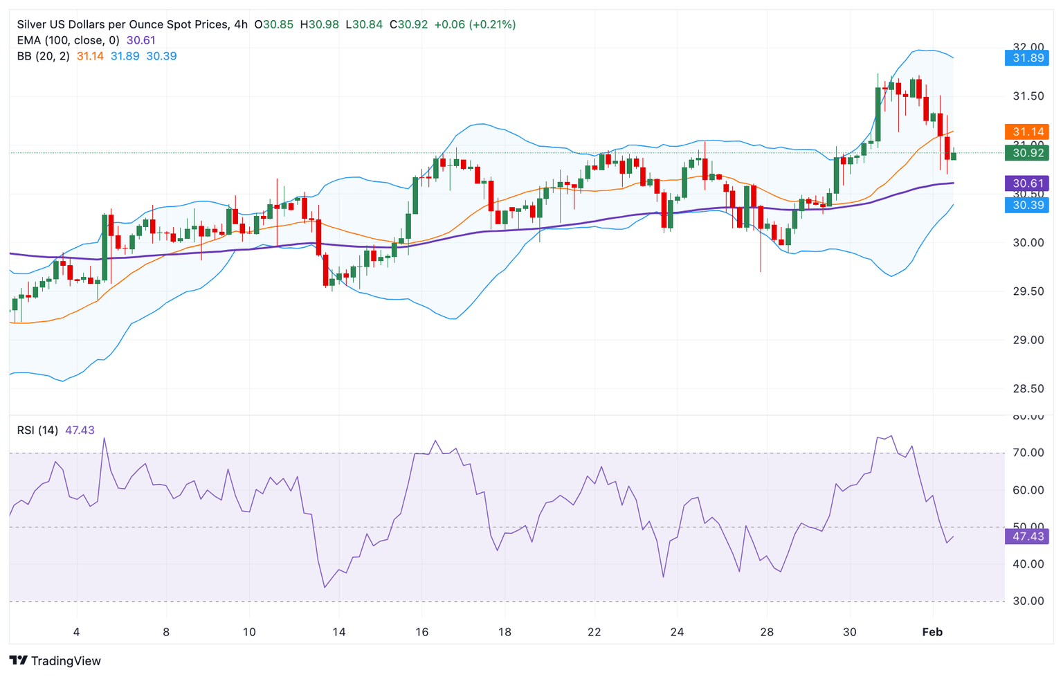 - Silver price loses ground to around $30.90 in Monday’s early European session, losing 1.30% on the day.