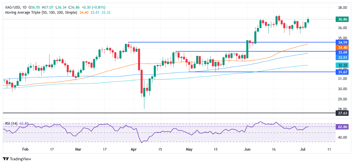 - Silver climbs 0.86%, eyes YTD high at $37.31 after clearing key $36.83 level.