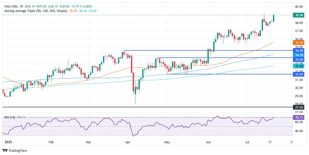 Silver Price Forecast: XAG/USD soars 2% toward $39 on Dollar weakness