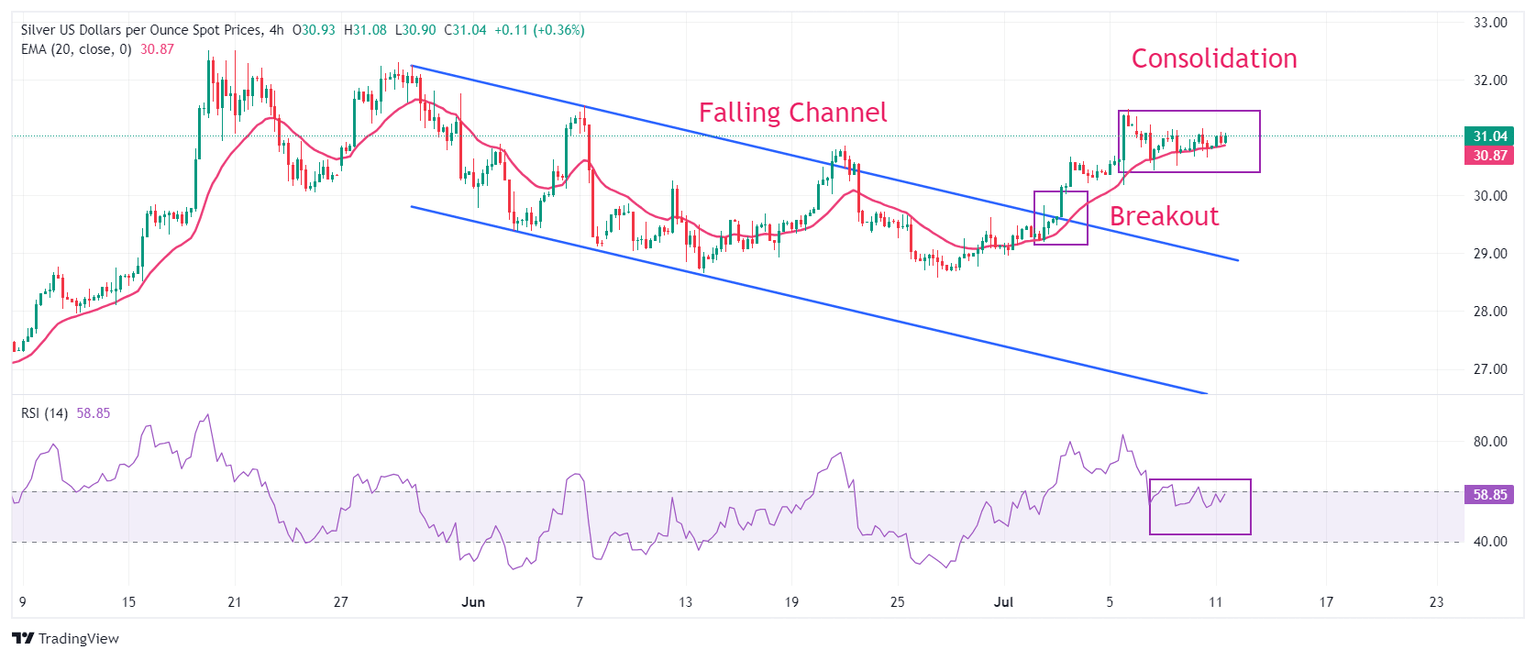 Silver price (XAG/USD) consolidates in a tight range for the last four trading sessions. The upside in the Silver price remains limited to around $31.00 as investors await the United States (US) Consumer Price Index (CPI) data for June, which will be published at 12:30 GMT.