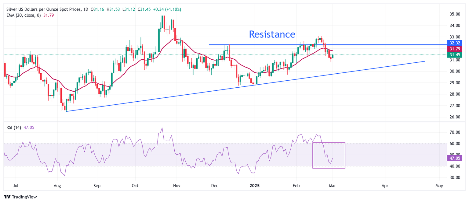 Meanwhile, fears of US President Donald Trump’s tariffs on Canada, Mexico, and China have also increased the demand for safe-haven Silver. On March 4, Trump is poised to impose tariffs on these countries for pouring drugs into the US economy.