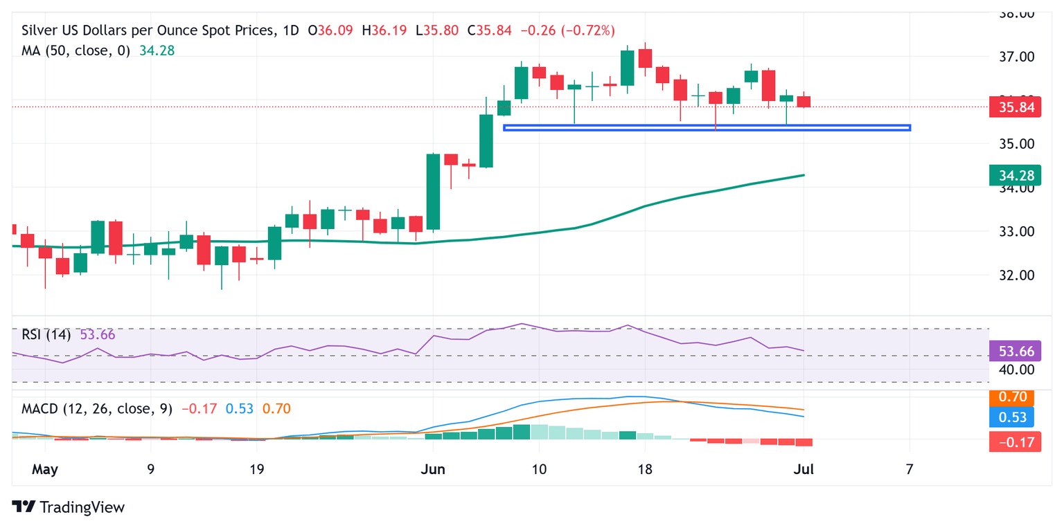 Silver Price Forecast: XAG/USD struggles below $36.00 mark; bears seem non-committed