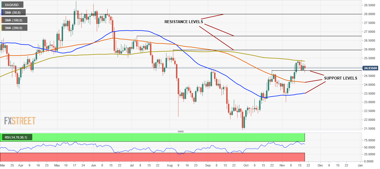 Silver Price Forecast: XAG/USD unable to break above the 200-DMA, retreats below $25.00