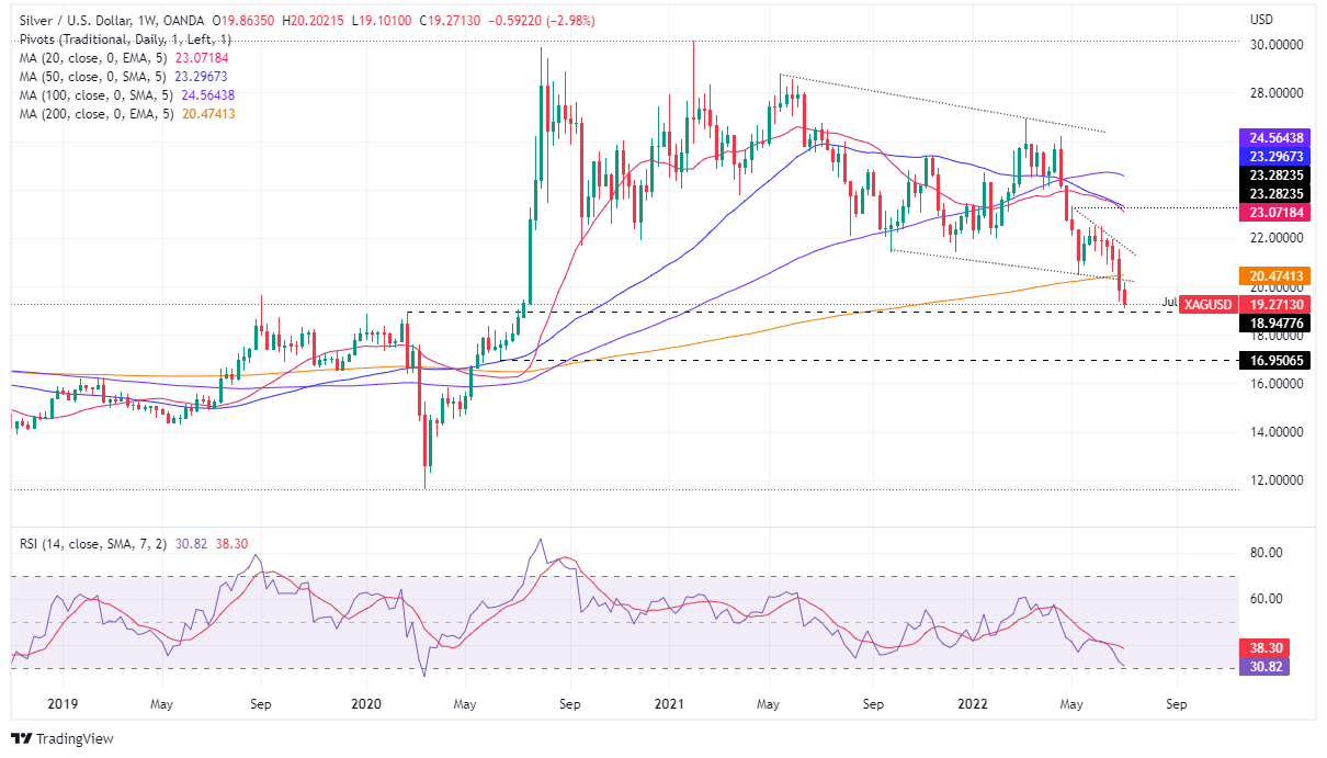 - Silver Price Forecast (XAGUSD): The break below the 200-week SMA paved the way for a fall towards June’s 2020 lows just below $17.00.