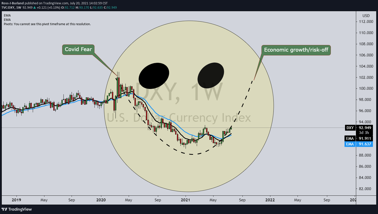 Meanwhile, however, there is the case being made for a longer-term bullish US dollar based on the dollar smile theory and prospects of worst to come from the Delta variant, now the dominant coronavirus strain worldwide.
