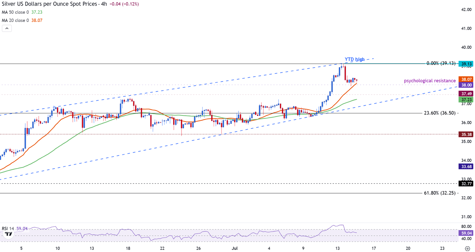 Silver pulls back below $38.50 as bullish momentum fades near YTD high