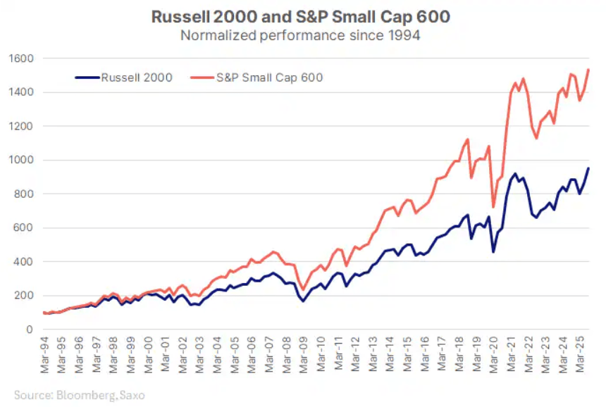 Bottom line: The S&P 600 focuses on the stronger small-caps, while the Russell 2000 covers all small-caps—good and bad.