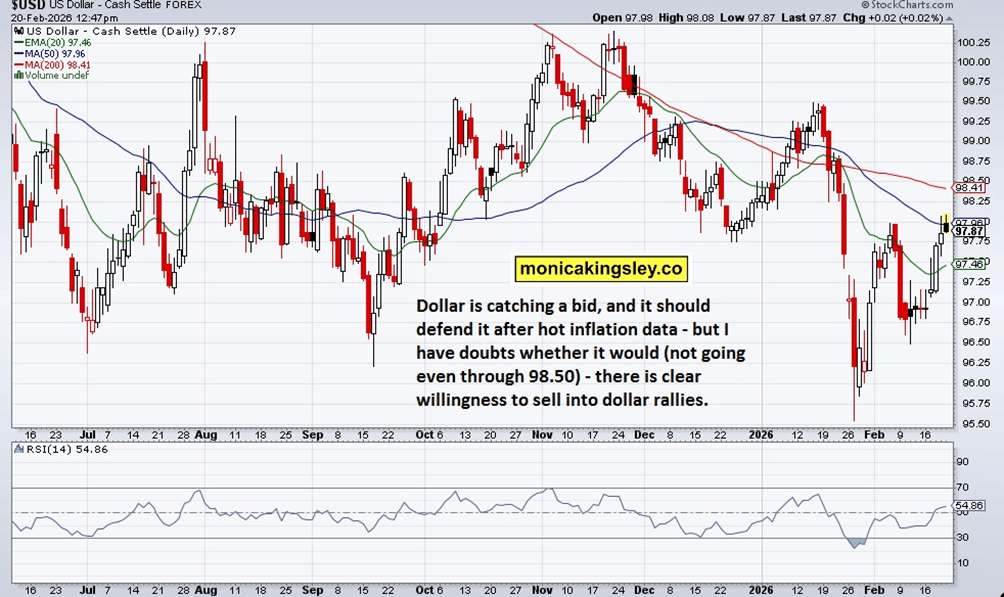 S&P 500 and Nasdaq offered plenty of intraday volatility, trying to break lower, but still capped within QQQ 606 and 601 areas. Today‘s inflation data will set the tone, and clients knew already what is my leading scenario to unfold. USD is having a hard time rising, isn‘t it so?
