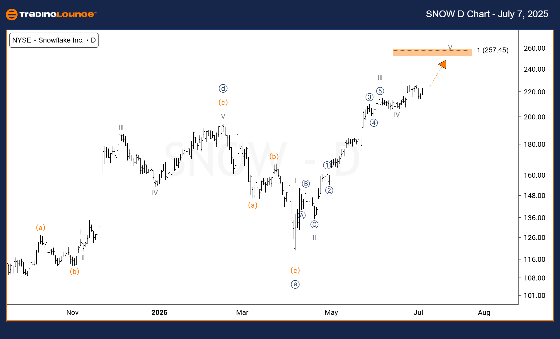 Snowflake Inc. (SNOW) remains in a bullish structure on the daily timeframe. The price continues its move higher toward Wave V. The current structure suggests the potential for a breakout above previous resistance levels, confirming underlying market strength. Since Wave III was the extended wave, Wave V is expected to target a move equal in length to Wave I. This development offers a favorable short-term setup for bullish positioning.