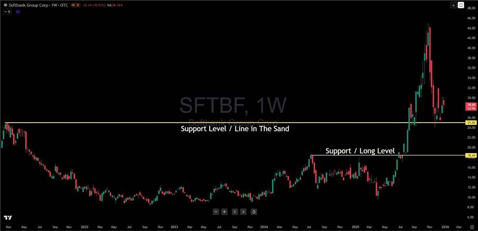 The next few weeks will tell us everything. Either SFTBF finds its footing here and continues building on the breakout, or it collapses back into the range and forces traders to reassess. For anyone watching this name, the $25 level is your North Star. Respect it, and you'll know exactly where you stand.