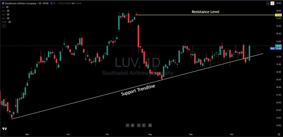 Southwest Airlines (LUV) finds itself at a defining technical level, one that could determine whether we see a meaningful rally or a breakdown that hands control back to sellers.