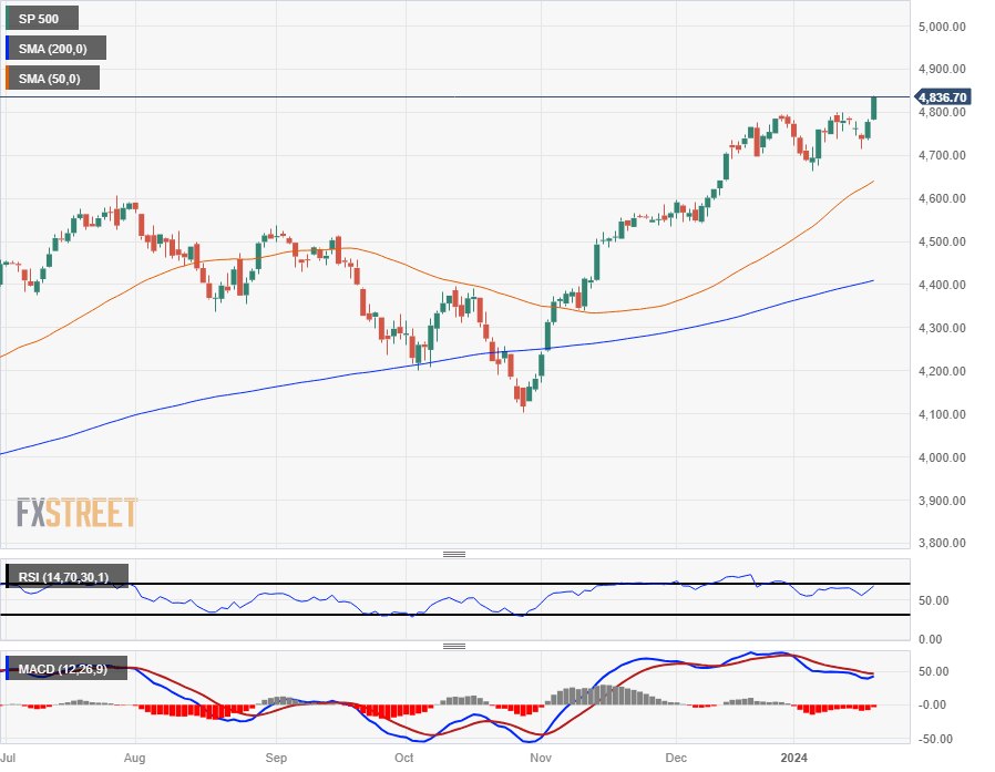 The S&P 500 major equity index climbed nearly one and a quarter percent to hit an all-time high of its own, ending Friday at $4,839.81, up 58.87 points on the day.