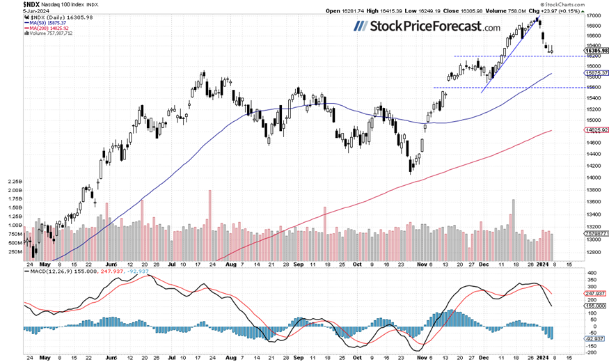 On December 21, I mentioned that “in a short-term the market may see some more uncertainty and volatility”, and indeed, there is a lot of uncertainty following an early-December rally and the breakout of the S&P 500 above the 4,700 level. There is still a chance of extending the medium-term uptrend, as no confirmed negative signals have emerged. However, the short-term market picture is currently more blurry, and indexes have begun their downward correction or the mentioned consolidation.