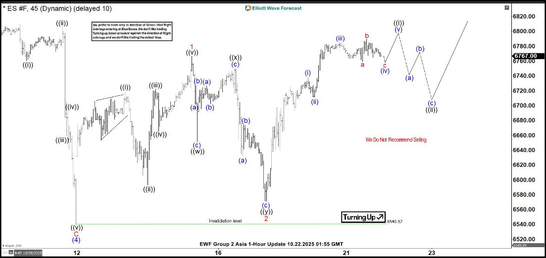S&P 500 E-Mini Futures (ES) latest one-hour Elliott Wave chart from 10.22.2025