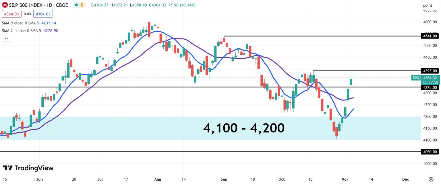 Above that last lower high lies the earlier September 1 lower high of 4,541. This level is the second focal point for bulls after the index achieves a break above 4,393.