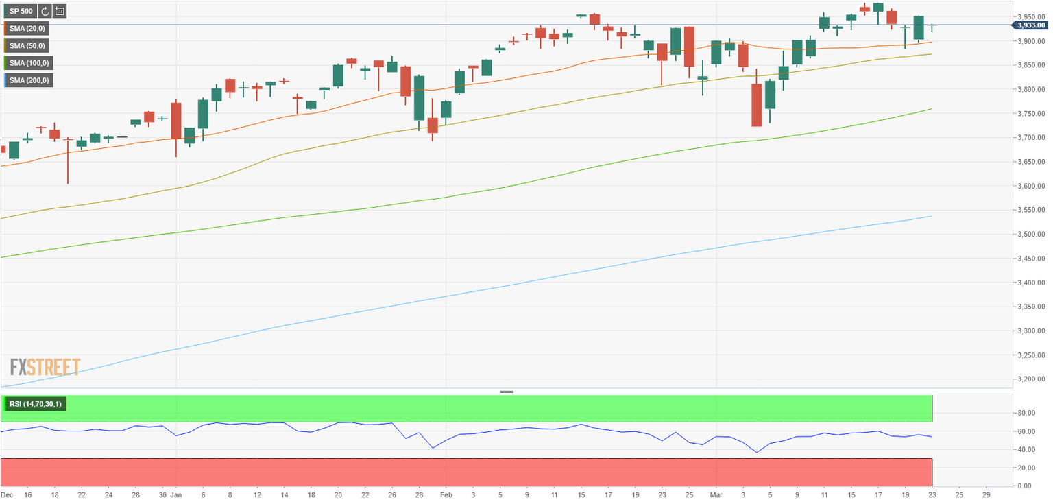 Among the 11 major S&P 500 sectors, the Energy Index is down 2% after the opening bell pressured by a 3.5% decline in crude oil prices. Meanwhile, the Financials Index is losing 0.4% as the 10-year US Treasury bond yield is losing more than 2% for the second straight day on Tuesday. On the other hand, the Technology Index is posting modest daily gains.