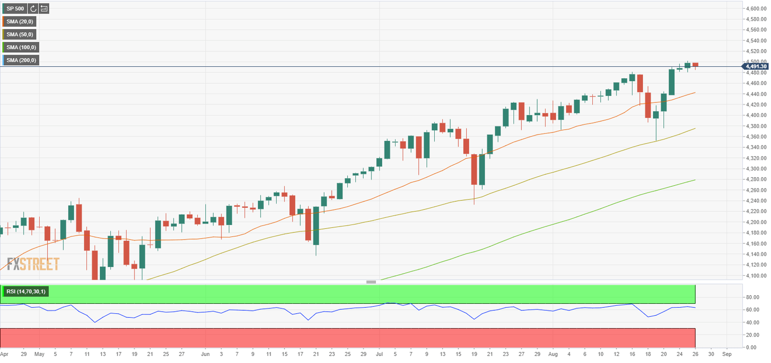 S&P 500 Index opens near Wednesday's closing level around 4,500
