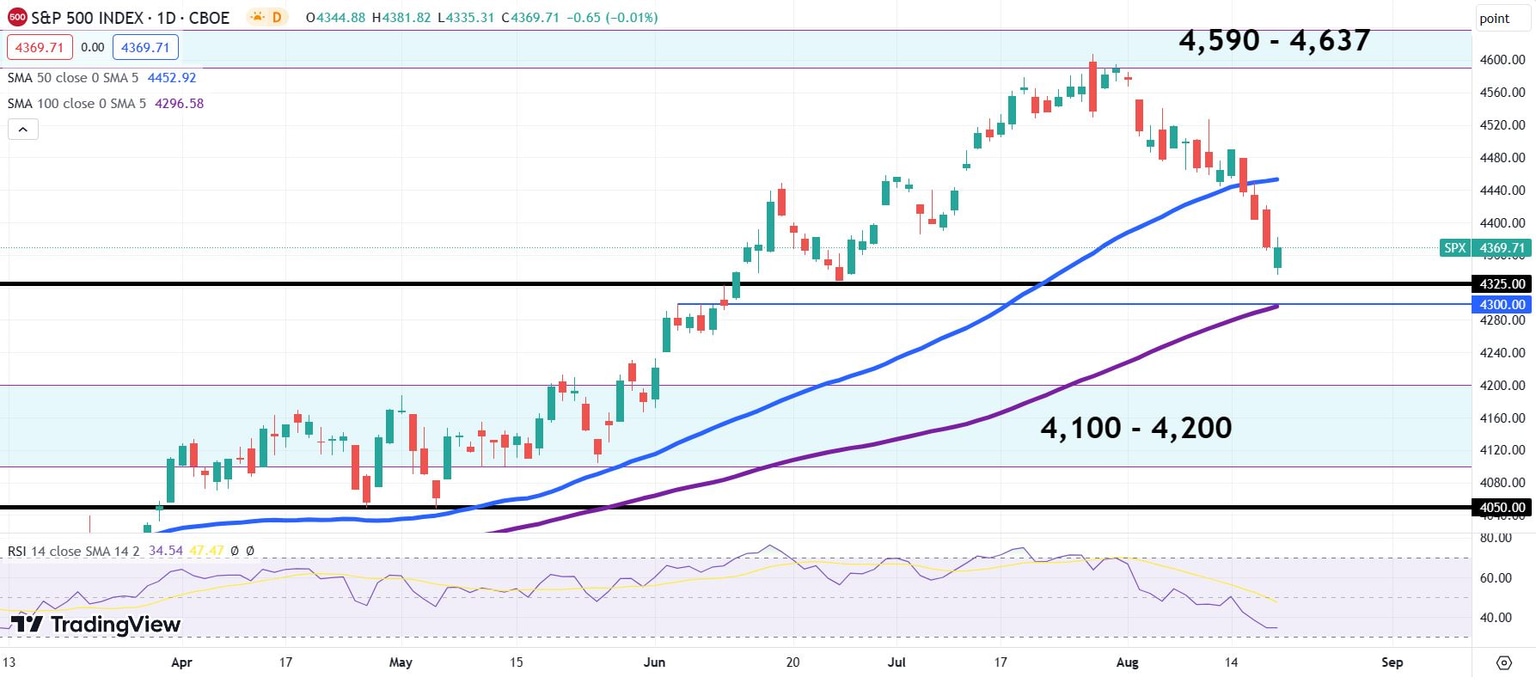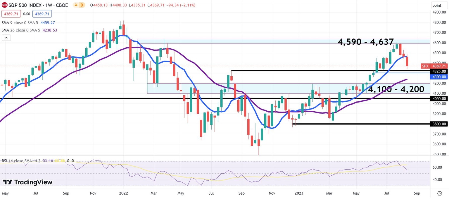 - S&P 500 lost 2.11% last week, bringing the August decline to 4.8%