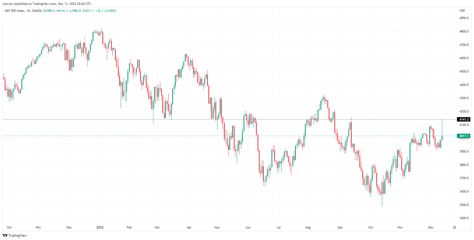 Before Wall Street opened, the US Department of Labor revealed that November’s Consumer Price Index (CPI) rose less than the 7.3% YoY expected to 7.1%. The so-called core CPI for the same period, which excludes volatile items like food and energy, printed 6.0% vs. 6.3% estimates. The reaction on the data sent the S&P 500 rallying to fresh three-month highs.