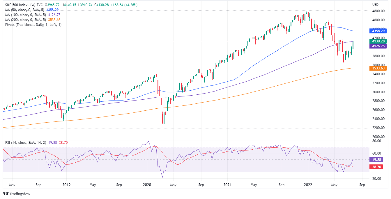 The S&P 500 closed the week gaining 1.42%, at 4,130.28, while the tech-heavy Nasdaq rose 1.88%, up to 12,390.69. Additionally, the Dow Jones Industrial followed suit and climbed 0.97%, finishing at 32,845.13.