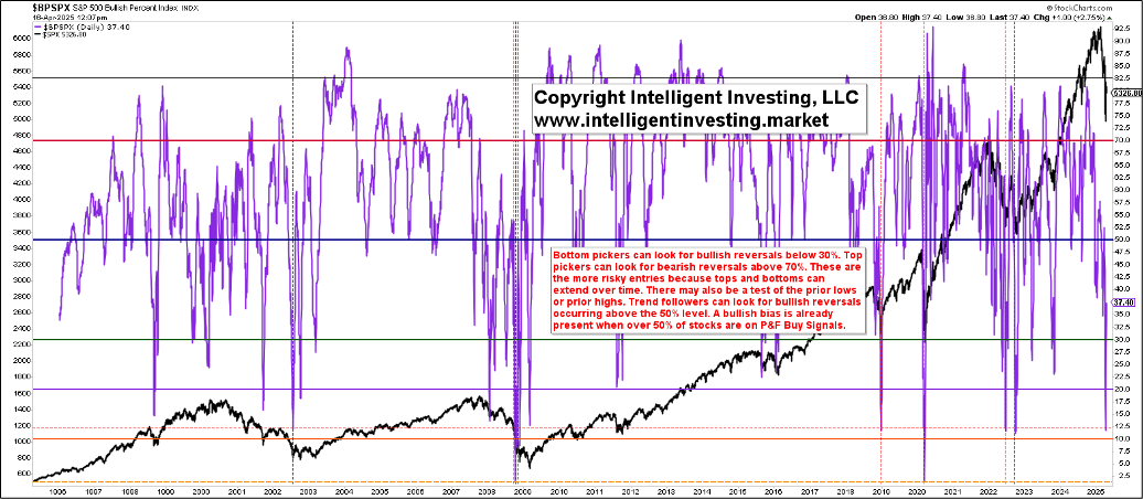 Next up is the Bullish Percent Index (BPI) for the SPX. The BPI tells us how many individual stocks that comprise an index, such as the SPX, are on a buy signal (point-and-figure chart). Aka, “it’s a market of stocks, not a stock market.” See Figure 2 below. Earlier this month, the BPI dropped to as low as 11.80. That is as low as during the 2022 bear market, the 2020 flash crash, and the 2019 correction. Before that, only the 2008 bear market eclipsed that low a reading. All occasions were excellent buying opportunities.
