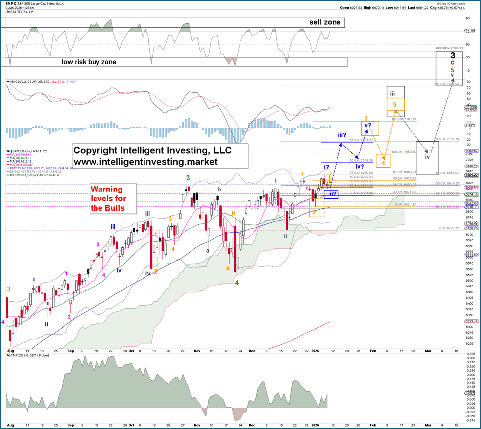 “… Provided the index holds above the November 21, 6720 low, the index can set itself up for a subdividing final 5th wave (gray waves W-i, ii, iii, iv, and v), ideally as high as 7490 by approximately April 18-28, 2026.”