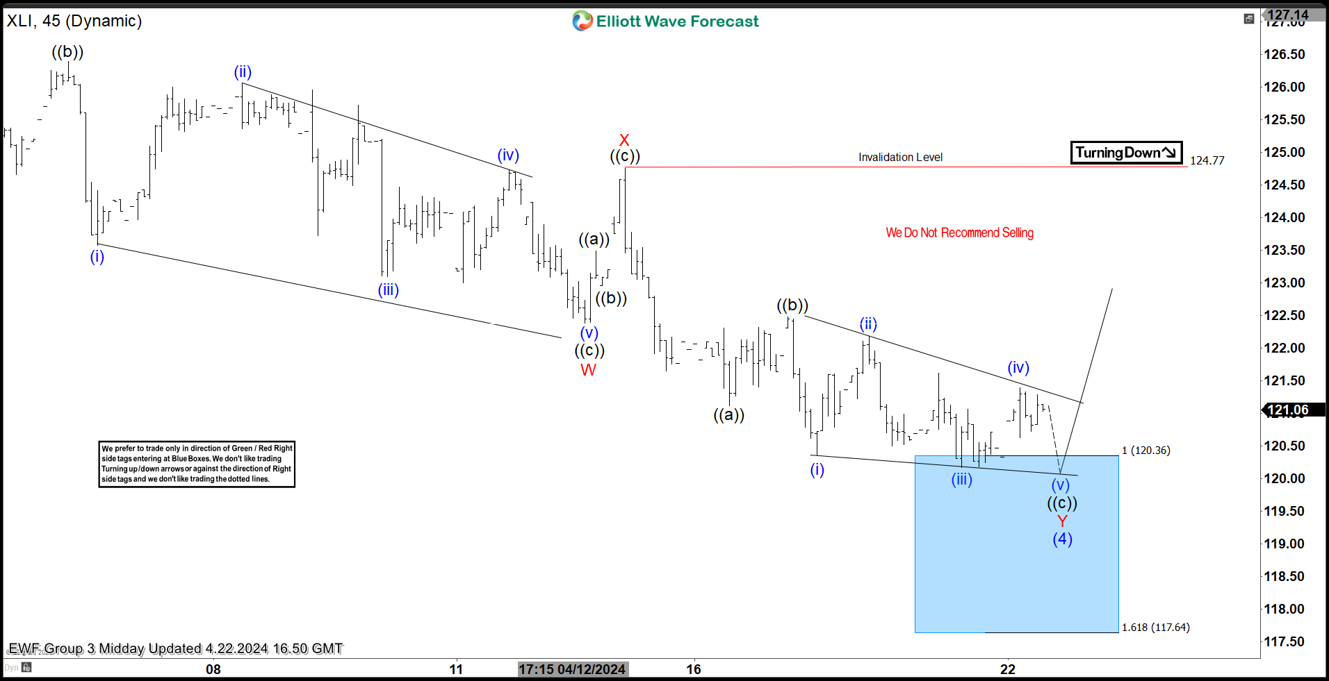 $XLI one-hour Elliott Wave chart 4.22.2024