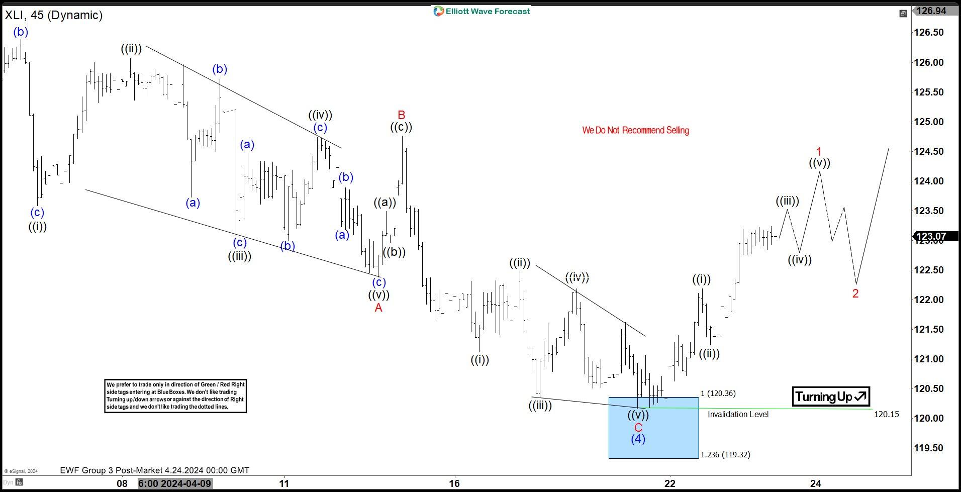 $XLI one-hour Elliott Wave chart 4.24.2024