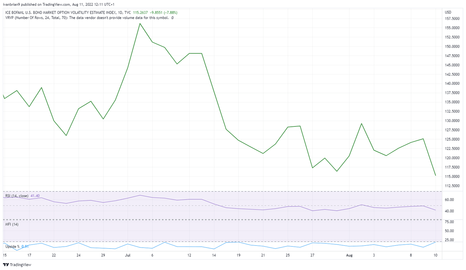 The market though as we have pointed out since July has been overly short or underweight equities, so this rally was badly needed. Shaping 8.5% inflation as the good news is needed to maintain this rally. Bond markets are also calming, and overall the effects of a summer lull are in effect. MOVE, the measure of bond market volatility, continues to fall, which is usually supportive of higher equity prices.