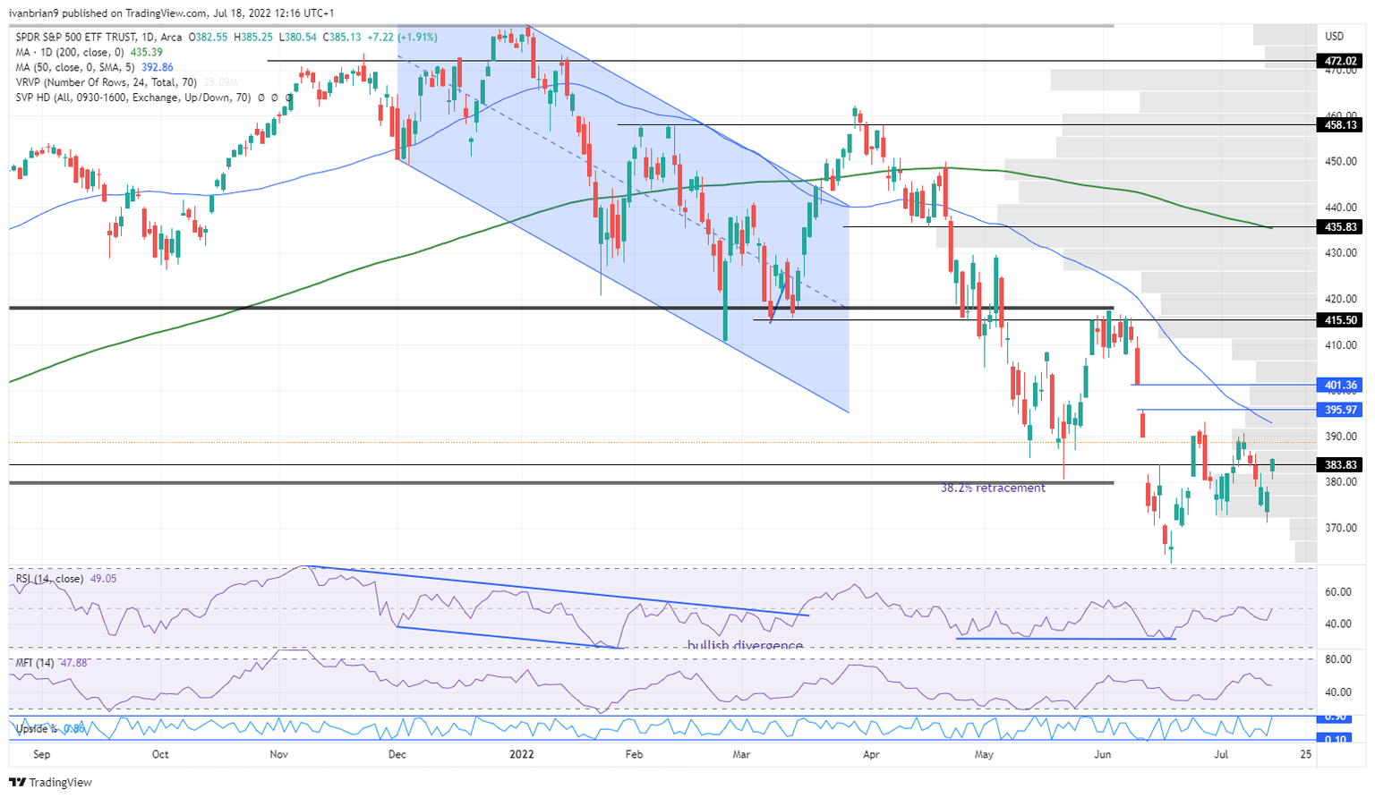 That could then allow this rally to stretch to $415, and a break of that level would see $435 as the next resistance.