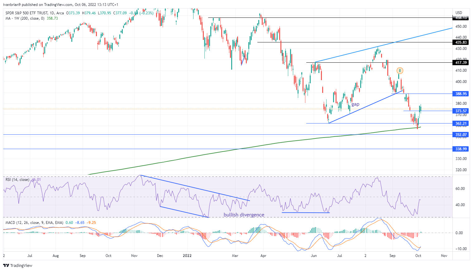 What a beautiful bounce from the 200-week moving average. We mentioned this potential in our weekly preview article, see here Week Ahead on Wall Street: Poor sentiment leads to new lows, but is October set up for a bear market rally?.