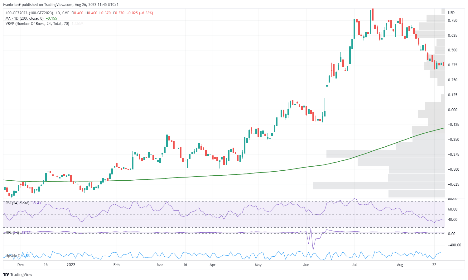 Irrespective of the long-term prognosis for rates and equities, this Jackson Hole melee will give us some short-term volatility and positioning still leans toward a rally of sorts. The market will mold the narrative to do what it wants to as we expect Powell to be reasonably vague. The gap to $421 looks like it will be filled, and that would then lead to a new test of the 200-day moving average at $430. Breaking below $410 ends any bullishness in our view and could lead to fresh yearly lows.