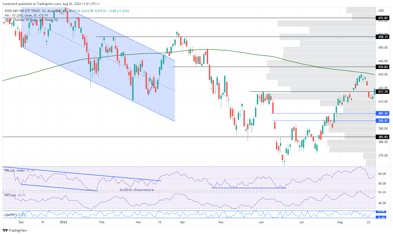 - SPY performs strongly on Thursday ahead of the Jackson Hole meeting.