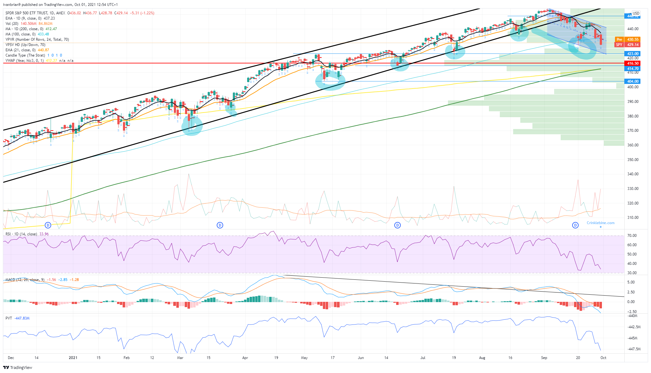 The S&P 500 (SPY) ETF bade farewell to September yesterday with another losing session, the fourth in a row for the index. This time it cannot blame the Nasdaq for dragging things lower as that was actually the top index performer on the day. Tech and Nasdaq stocks have largely led recent declines as yields globally have soared and the US 10-year popped back above 1.5%. While yields have calmed today, the situation is unlikely to get much better as Eurozone inflation numbers hit a 13-year high and Fed Chair Powell has been forced to admit that inflation may not be transitory after all.
