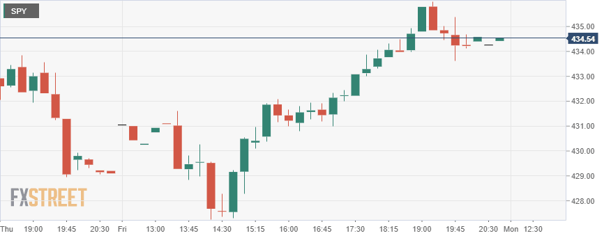 - SPY closes a tumultuous week over 1% higher at $434.24.