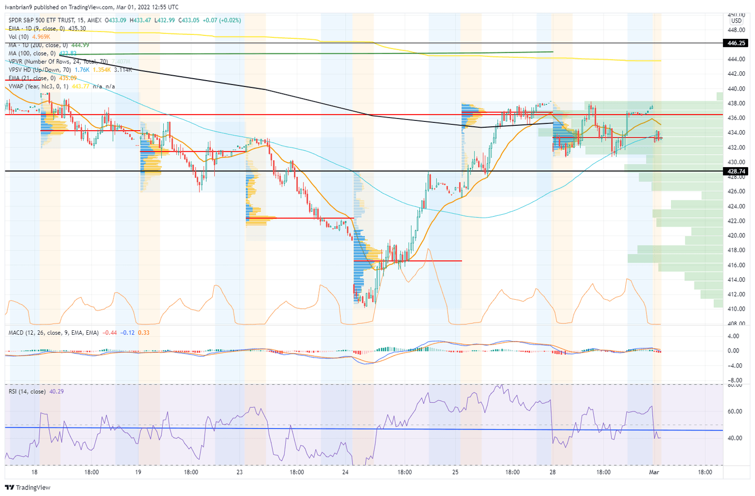 For intraday, look to yesterday's range of $430 to $438 as your intraday support and resistance. Breaking $428 will likely lead to a move to $417.