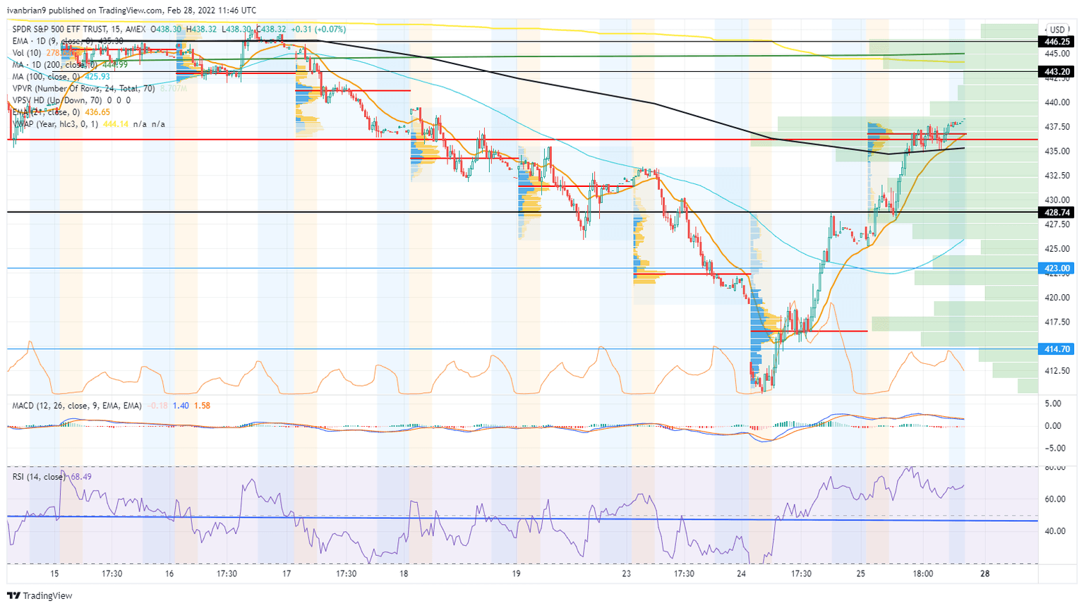 S&P 500 (SPY) chart, 15-minute