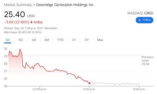 NASDAQ:GREE has seen nothing but red since its merger with Support.com, as the stock has now lost 42% over the past week and 76% during the past month. On Thursday, shares of Greenidge Generation slumped again and lost a further 12.68% to close the session at $25.40. The decline came on a day where the broader markets were rallying, as the U.S. markets erased the losses from earlier in the week. The Dow Jones paced the major indices by adding 1.48% during the session, and the NASDAQ and S&P 500 were up 1.04% and 1.21% respectively.