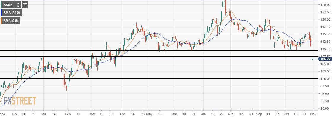 We at FXStreet think this is unlikely though. Starbucks has raised its dividend for 11 years in a row and is thus a staple of large institutional buyers intent on dollar cost averaging into dependable dividend growers. SBUX is just too attractive at these prices to stay here long.