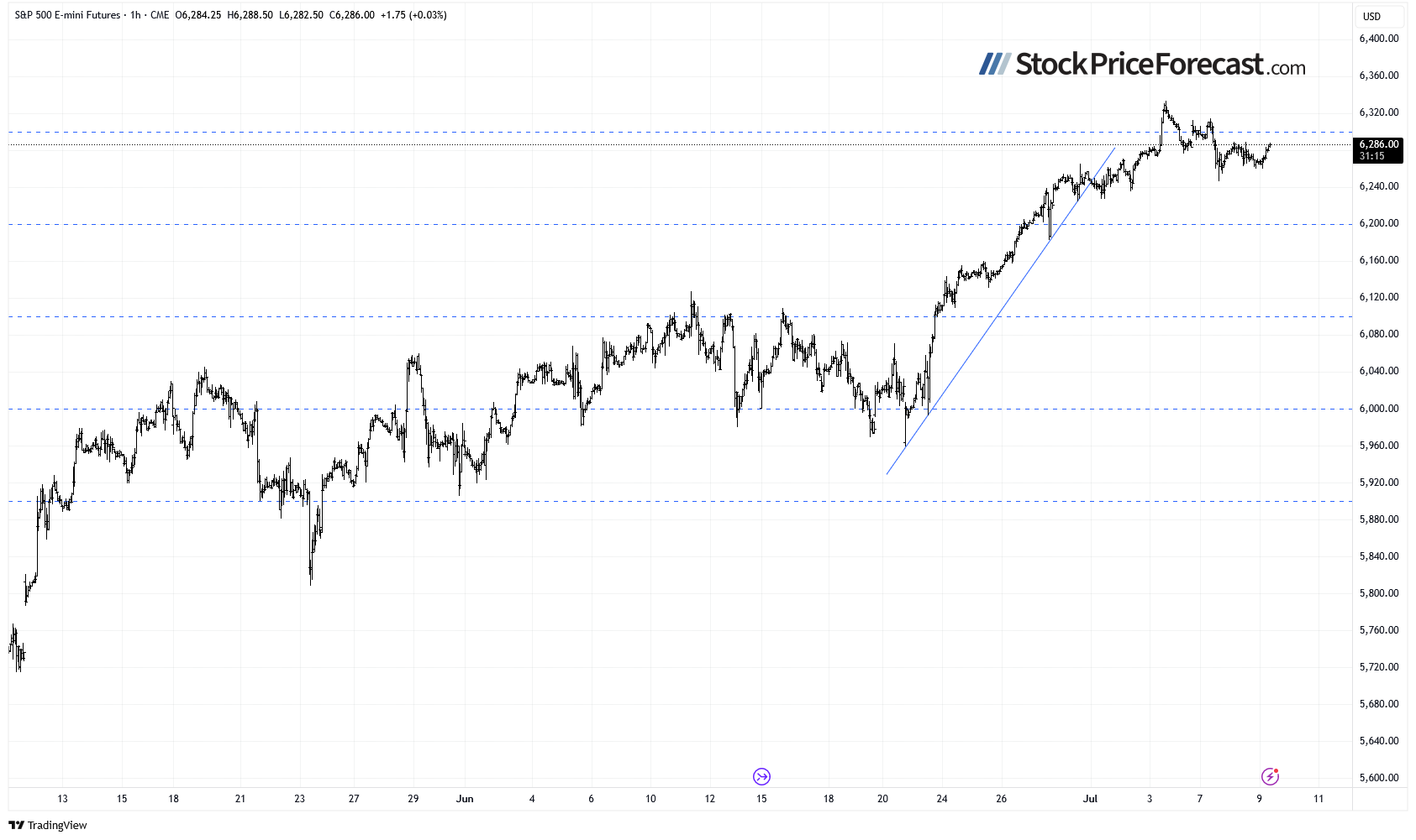 S&P 500 futures contract: Approaching 6,300 again