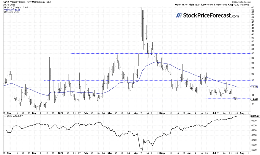 Historically, a dropping VIX indicates less fear in the market, and rising VIX accompanies stock market downturns. However, the lower the VIX, the higher the probability of the market’s downward reversal. Conversely, the higher the VIX, the higher the probability of the market’s upward reversal.