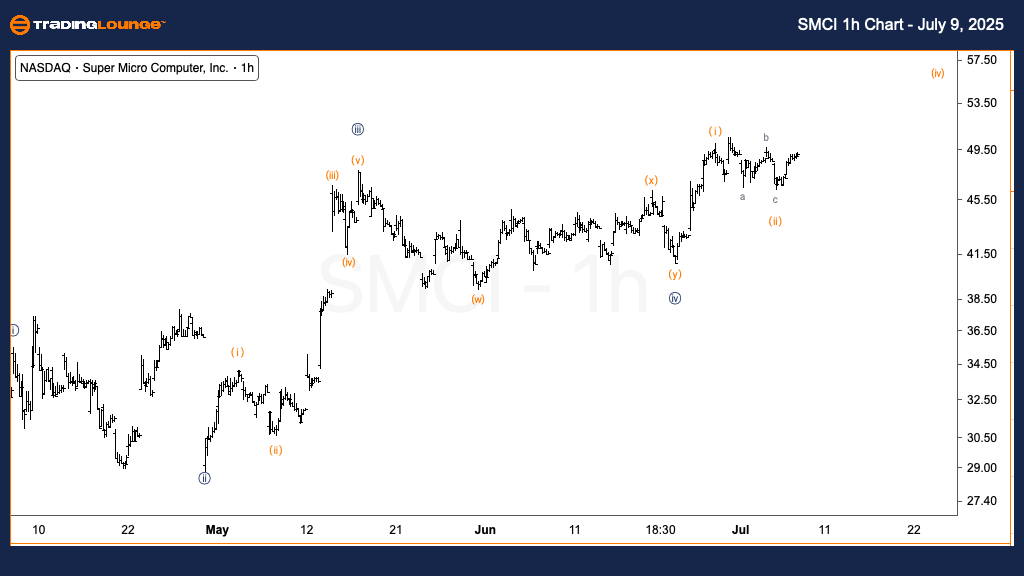 In the 1-hour view, SMCI appears to have bottomed in wave (ii) of {v} and is now progressing into wave (iii). The price is closing in on the $50 level, a key area where prior support may be retested. If the price sustains above this zone, it would strengthen the bullish outlook and confirm the continuation of wave (iii), leading to the completion of wave C.